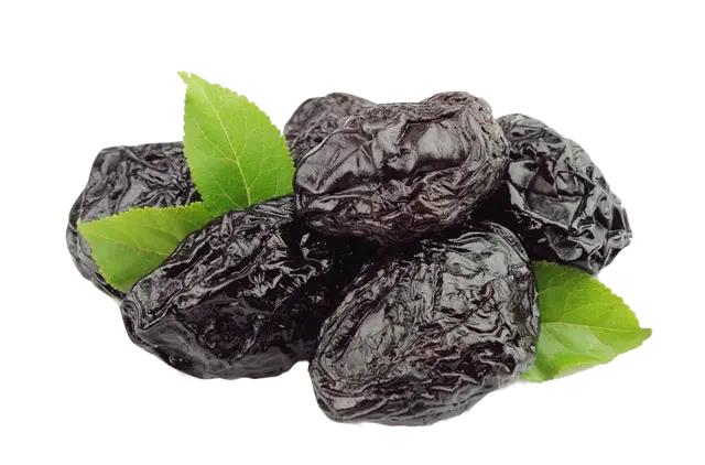 Las ciruelas pasas son fuente excelente de potasio, magnesio, calcio, hierro y de provitamina A (beta-caroteno) y niacina o B3. La vitamina C, en mayor cantidad en la fruta fresca, se pierde durante el desecado. Constituyen una fuente por excelencia de fibra soluble e insoluble, lo que le confiere propiedades saludables para mejorar el tránsito intestinal. El aprovechamiento del calcio de estos alimentos es peor que el que procede de los lácteos u otros alimentos que son buena fuente de dicho mineral.