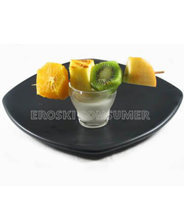 Zukutu laranjak eta limoia eta nahastu bi azukre koilarakadekin. Moztu platanoak zentimetro bateko xerratan, egin mango-bolatxoak hustugailu batekin, ebaki kiwia kubotan, eta anana, zuritu eta bihozgabetu ondoren, triangeluetan. Sartu fruta zukuan, eta utzi marinatzen gutxienez 2 orduz. Sartu frutak pintxoetan eta utzi hozten. Sarrera gisa edo aperitibo gisa balio du.