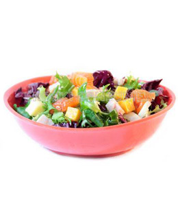Zuritu litchiak eta kendu erdiko hezurra. Kumquat-ak zatitxotan banatu (ez da beharrezkoa azala kentzea) eta litchiekin eta gazta eta urdaiazpikoa zatitxotan gehitu aurrez prestatutako entsaladara. Oliba-olioarekin, ozpinarekin eta gatzarekin ozpin-olio bat prestatu. Apaindu papaia-zerrenda finekin.