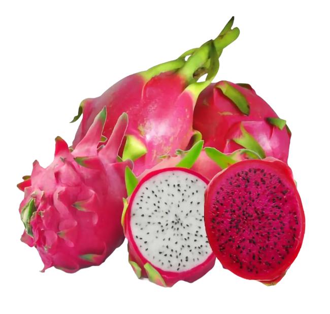 Pitahaya ia ur zati bat da, azukrez gozatua. Oso kaloria gutxiko fruituak dira, ia ez baitute karbohidratorik. C bitaminaren edukia nabarmentzen da barietate gorrian, horian ez bezala. Jateko zatiak pisu osoaren %55 hartzen du. C bitaminak lagundu egiten du kolagenoa, hezurrak, hortzak eta globulu gorriak sortzen, eta lagundu egiten du elikagaiek burdina xurgatzen eta infekzioen aurka egiten, eta herdoilaren aurka egiten du.