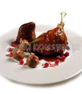 Ahatea labetik atera eta zatitu, labeko iturritik koipe likidoa kendu eta Portoko ardoarekin labeko iturrian itsatsitako zukuak desglasatu.