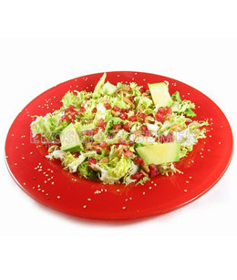 Ensalada de aguacate, laranxa, granada e lagostinos