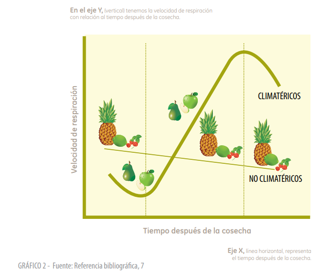 - Frutas no climatéricas: son frutas que no pueden seguir madurando una vez se hayan separado de la planta, por lo que se deben de recolectar en su momento óptimo de consumo. Son frutas como las uvas, las cerezas y los cítricos.